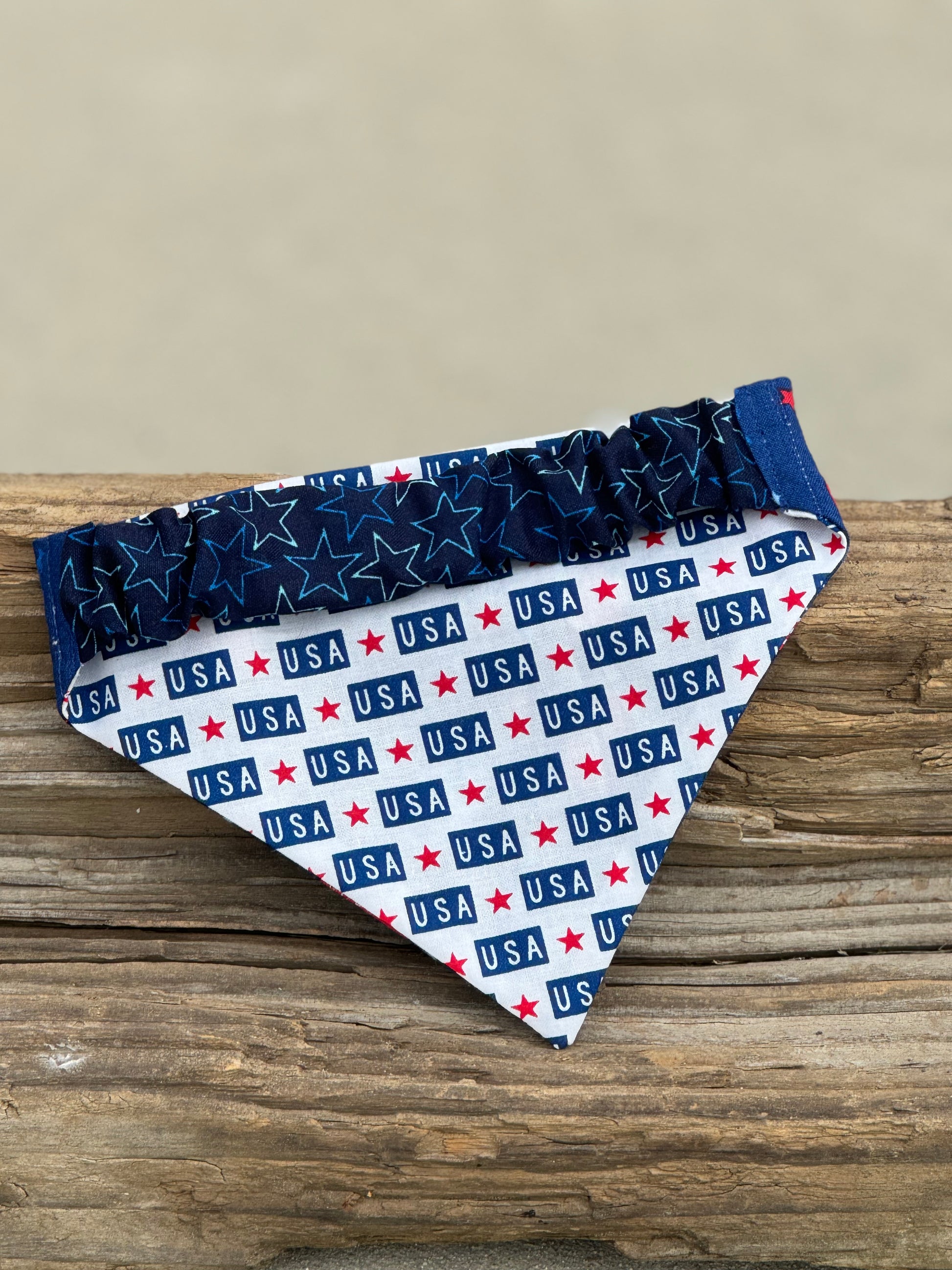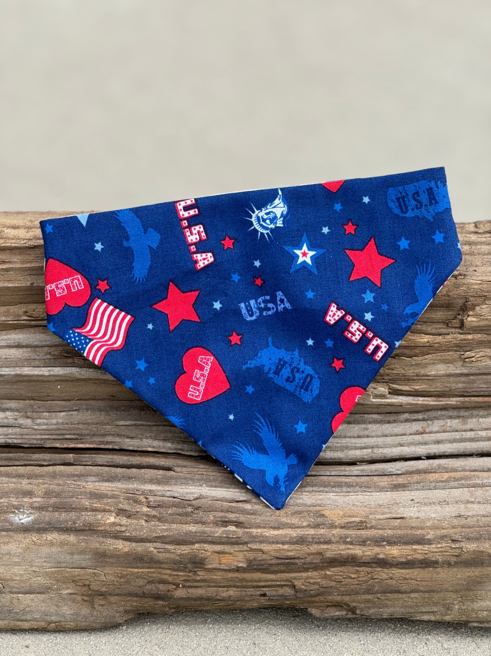 Celebrate America with our Fourth of July Double Sided Dog Bandana! This playful and patriotic accessory is double sided for double the fun. So go ahead, dress up your furry friend in style for the holiday. (Woof-derful for the Fourth!)